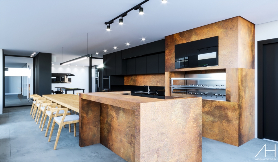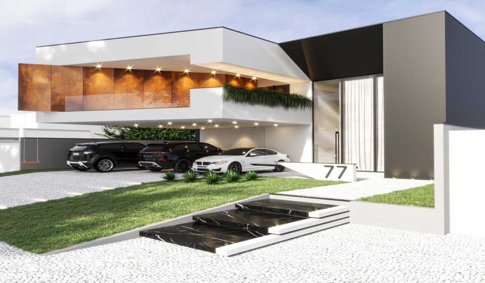 O projeto da Residência Corten 77 foi elaborado pensando-se em atender às necessidades do cliente com um design único e exclusivo, conferindo-lhe uma arquitetura moderna com um toque industrial.